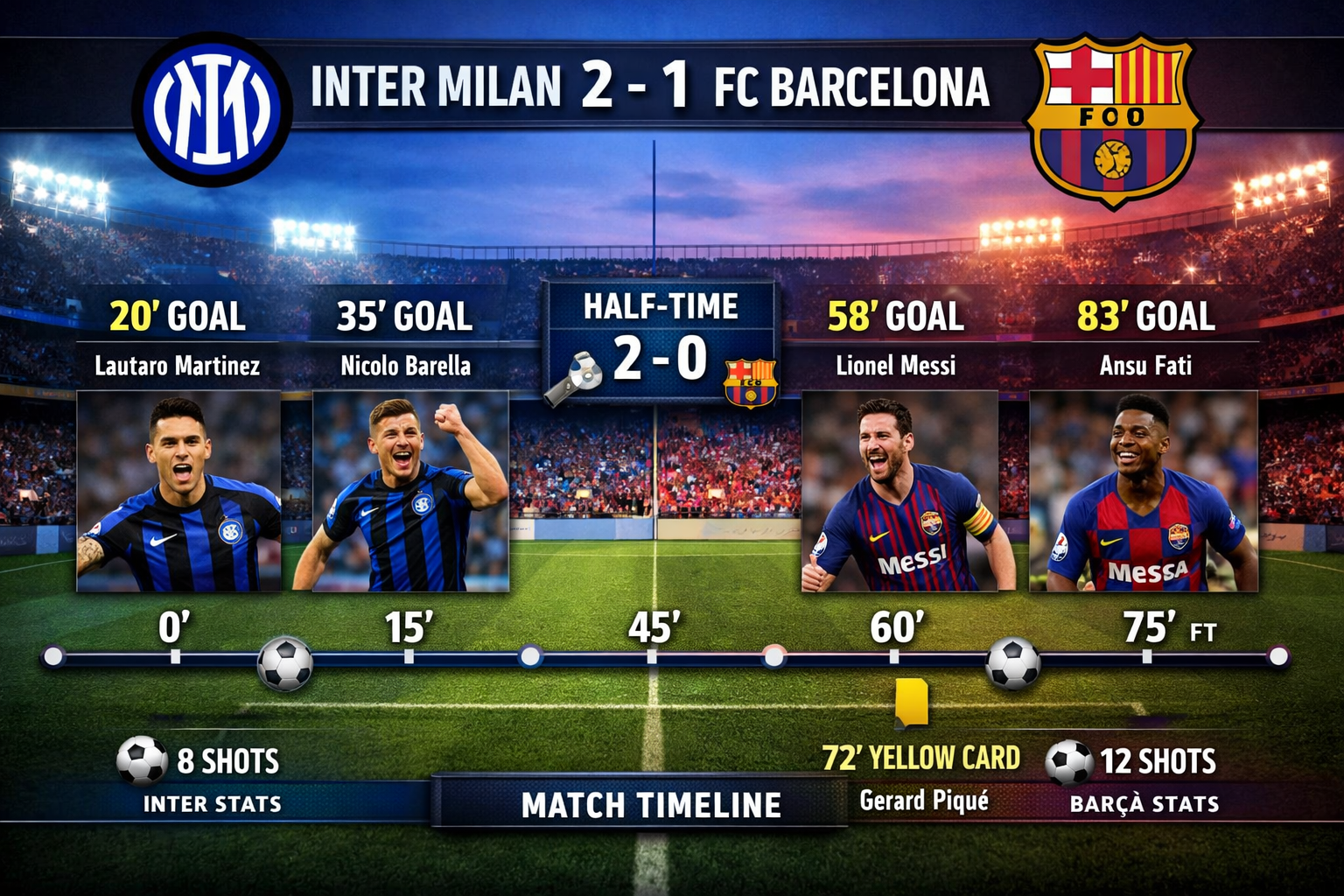 Detailed Inter Milan vs FC Barcelona Match Timeline Table