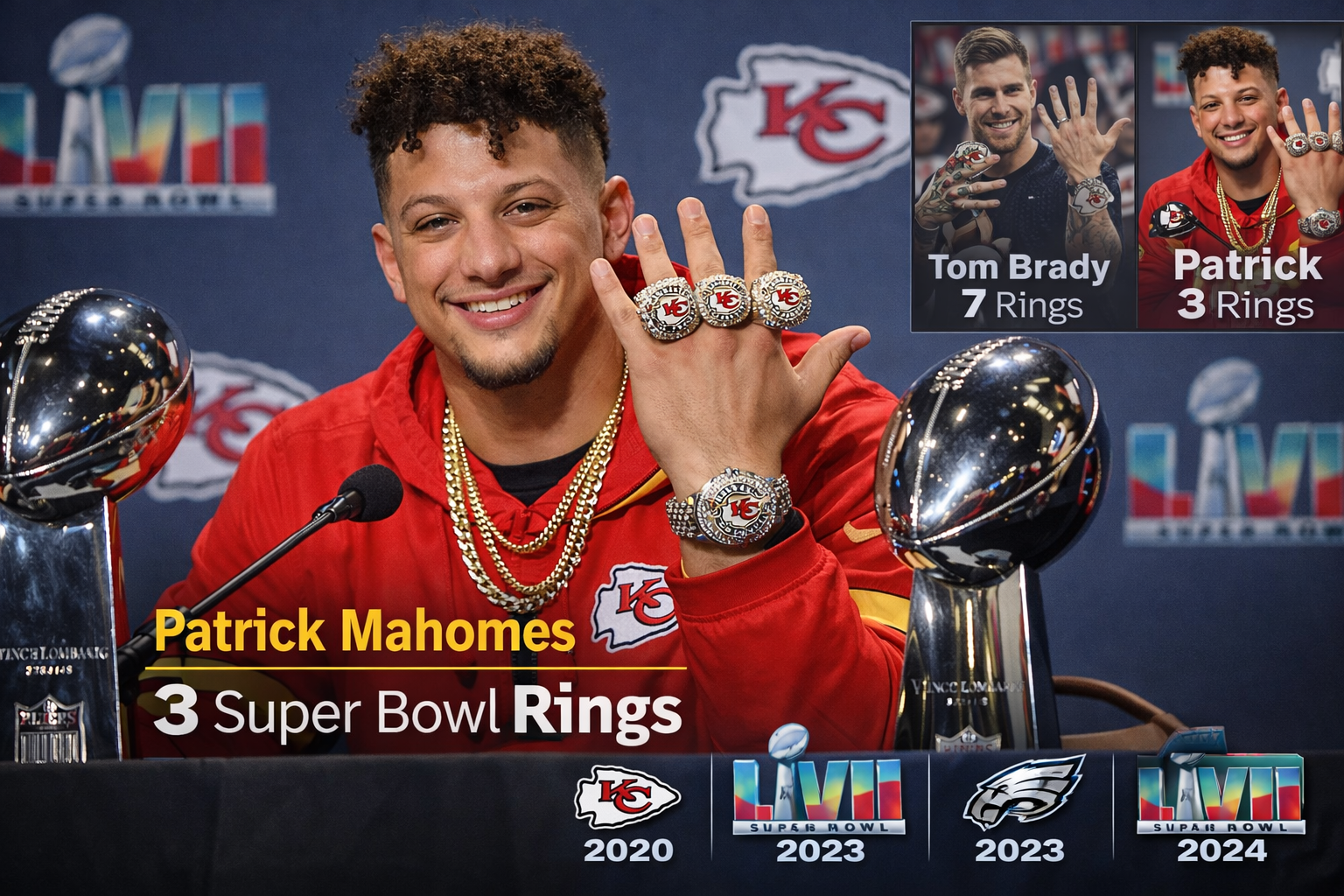 For context, the Chiefs also lost Super Bowl LV (played February 7, 2021) to the Tampa Bay Buccaneers, and later lost Super Bowl LIX (played February 9, 2025) to the Philadelphia Eagles. Those losses don’t change his Patrick Mahomes rings count (still 3), but they do show how often he’s been on the sport’s biggest stage. That’s why the ring conversation around him keeps getting louder every season.